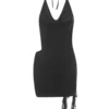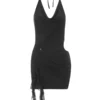 Women Summer Mini Beach Dress Sleeveless Backless Halter Neck Tie Dye/Leopard/Solid Color Dress