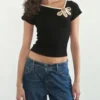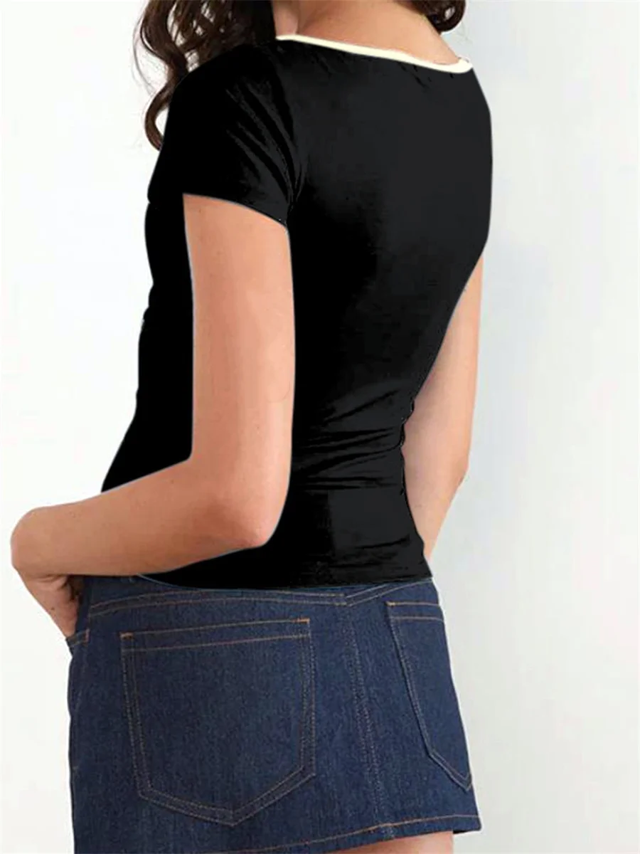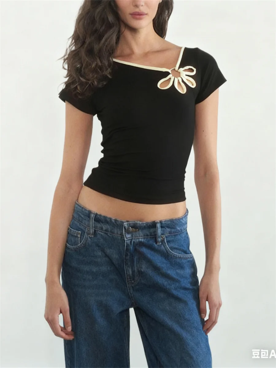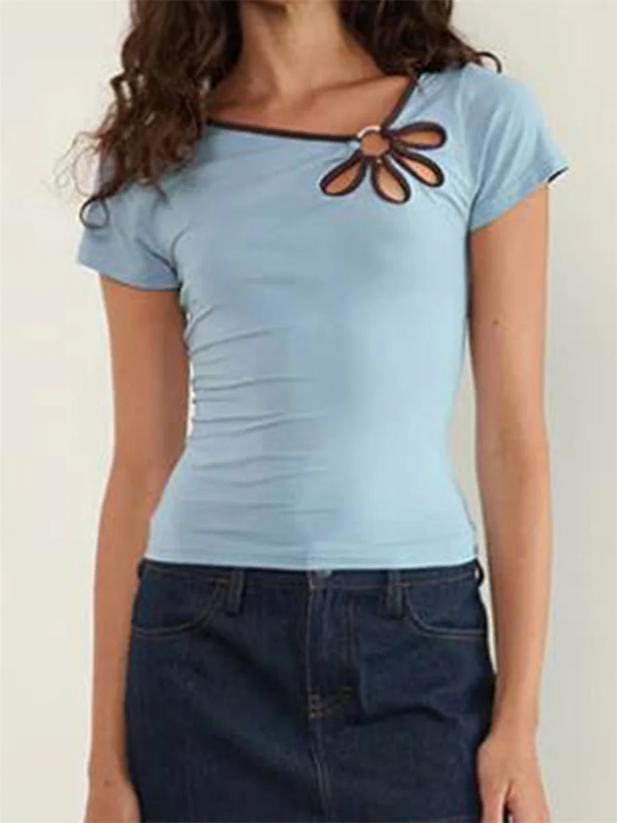 Women T-shirt, Short Sleeve Hollowed Slim Fit Summer Tops Streetwear for Casual Daily