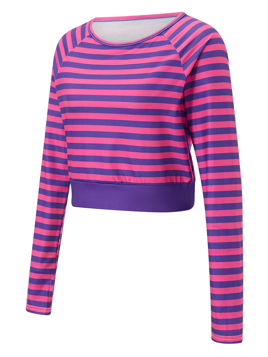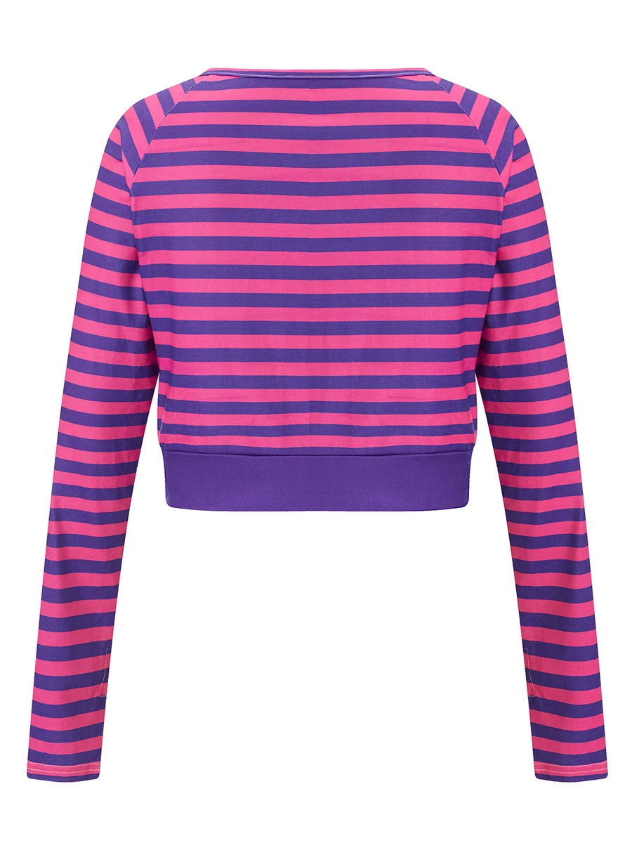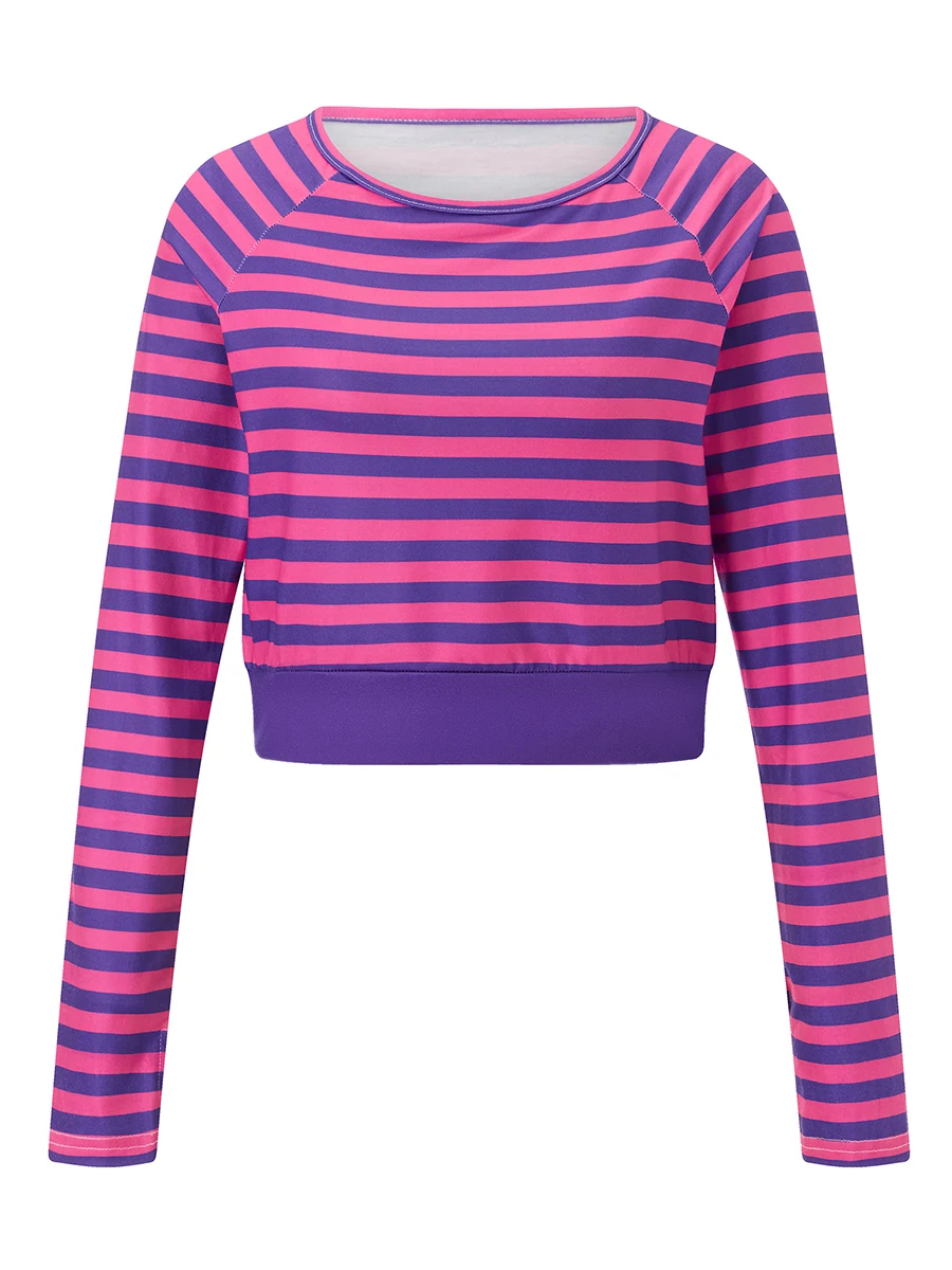 Women Long Sleeve T-Shirts Stripe Round Neck Casual Shirts Spring Fall Slim Fit Tops Streetwear