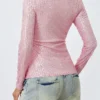 Women Long Sleeve Tops Sequins Basic Shirt Casual Pullover for Fall Club Streetwear Aesthetic Clothes