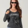 Women´s Spring Autumn Fitted Tops Long Sleeve Letter Pattern Print Skinny T-shirt Streetwear