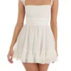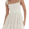 Women Summer Casual Mini Dress Swiss Dot Fly Sleeve Tie-Up Backless Dress Beach Holiday Party Short Dress