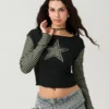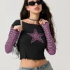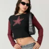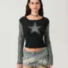 Women T-shirt Long Sleeve Crew Neck Star Stripe Star Graphic Slim Fit Tee Tops Ladies for Casual Daily Gothic Y2K Shirts