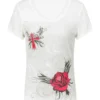 Women’s T-shirt Rhinestone Flower Print Short Sleeve Slim Tee Shirt