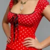 Women’s Dot Cap Sleeve Tops Summer Casual Fashionable Square Neck Slim Fit T Shirt