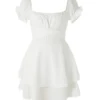 Women’s Mini A-Line Dress Solid Color Ruffled Sleeves Square Neck Layered Hem Dress for Party Club Elegant Dresses Summer