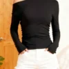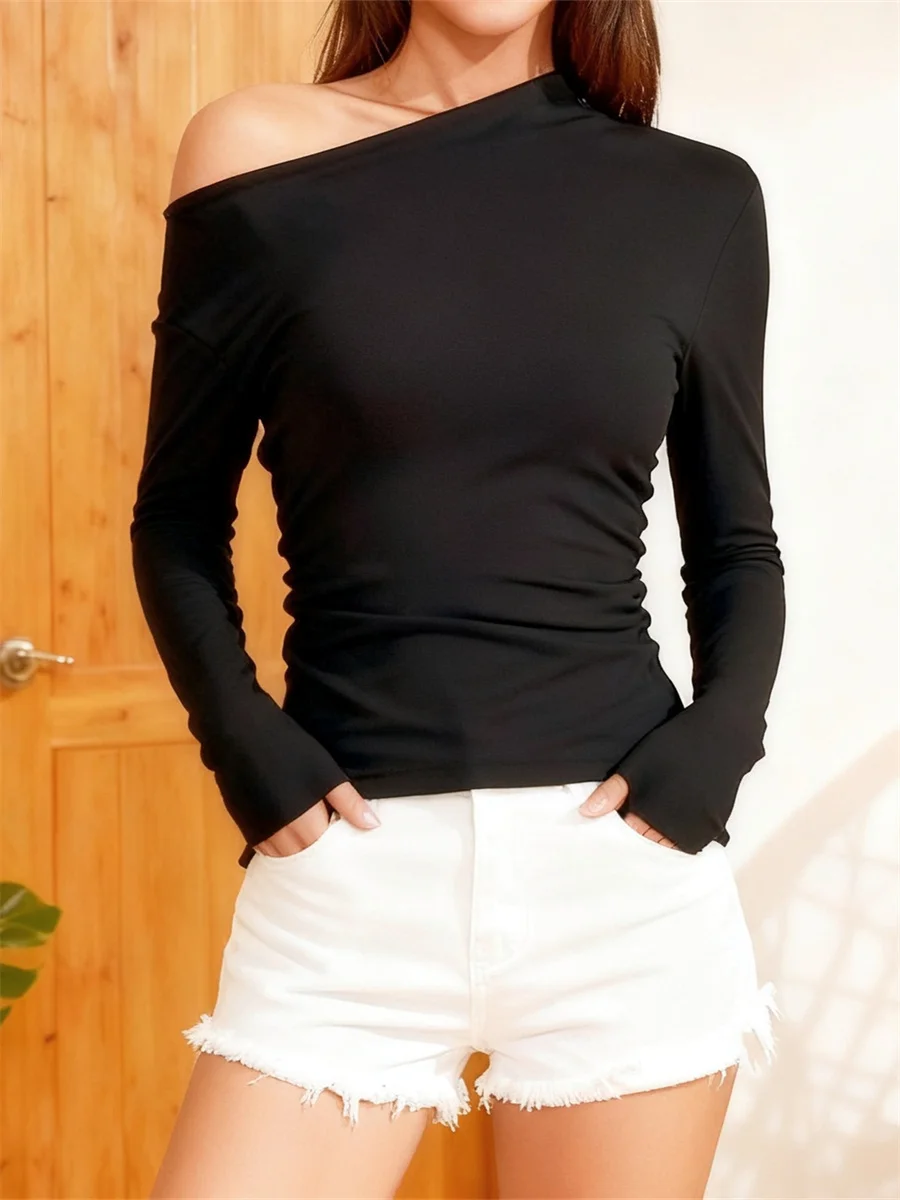 Womens Off One Shoulder Tops Fashionable Solid Color Long Sleeve Slim Fit Shirts Black Stylish Slim Fit Tops For Women Perfect For Casual Party Or Office Wear