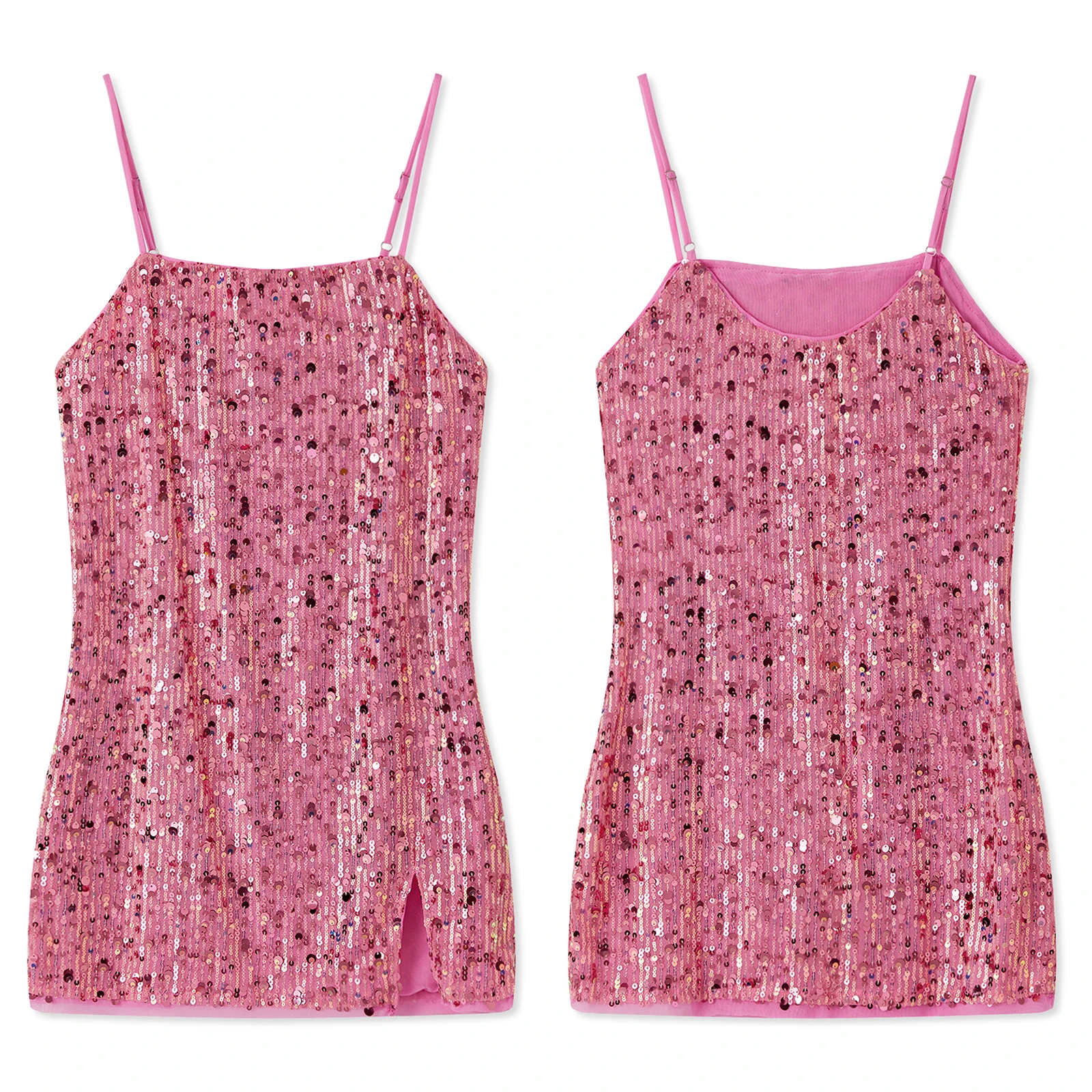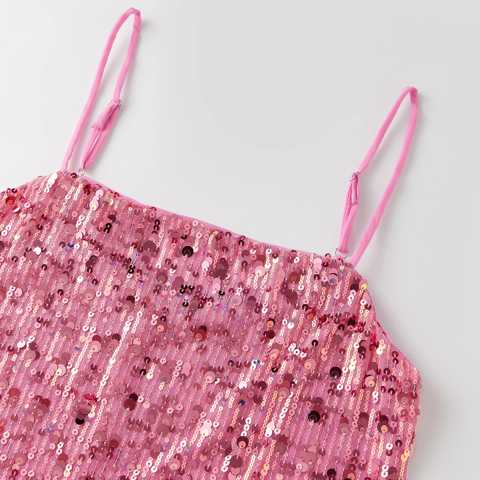 Women’s Sequin Mini Dress Glitter Sleeveless Spaghetti Strap Solid Color Dress Clubwear