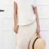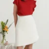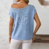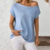 Women’s Solid Color Knitted Tops Short Sleeve Slant Collar Spring Summer Casual T-Shirts