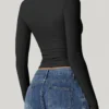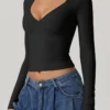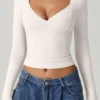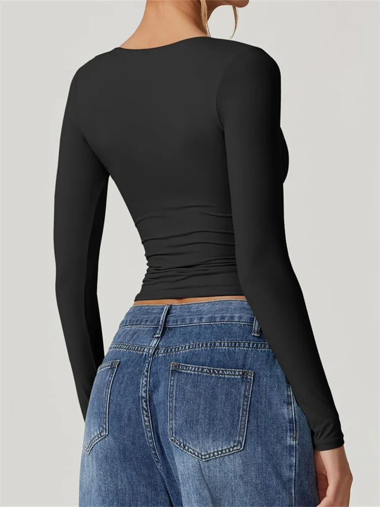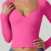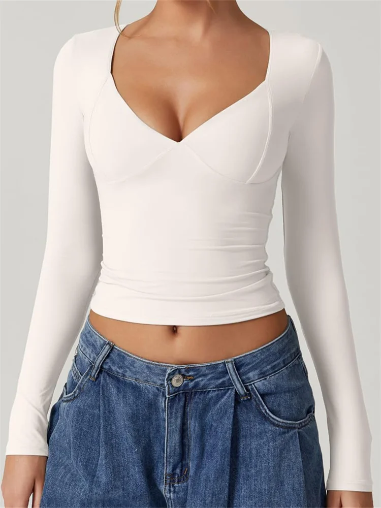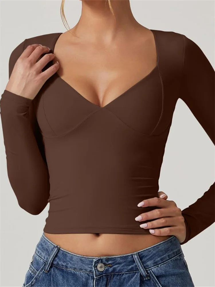 Women’s Solid Color T-Shirts Long Sleeves Slim Fit Sweetheart Neck Fall Casual Tops