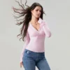 Women’s Spring Slim Fit Tops Solid Color Long Sleeve Wrap V-Neck T-Shirt Streetwear