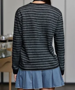 Women’s Fall Long Sleeve Tops Stripe Print Round-Neck Loose T-Shirt Casual Pullovers Streetwear