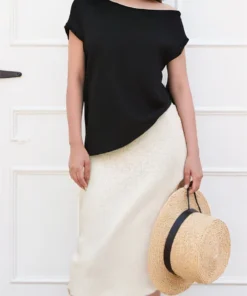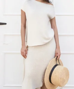 Women’s Solid Color Knitted Tops Short Sleeve Slant Collar T-Shirts Spring Summer Casual Loose Shirts